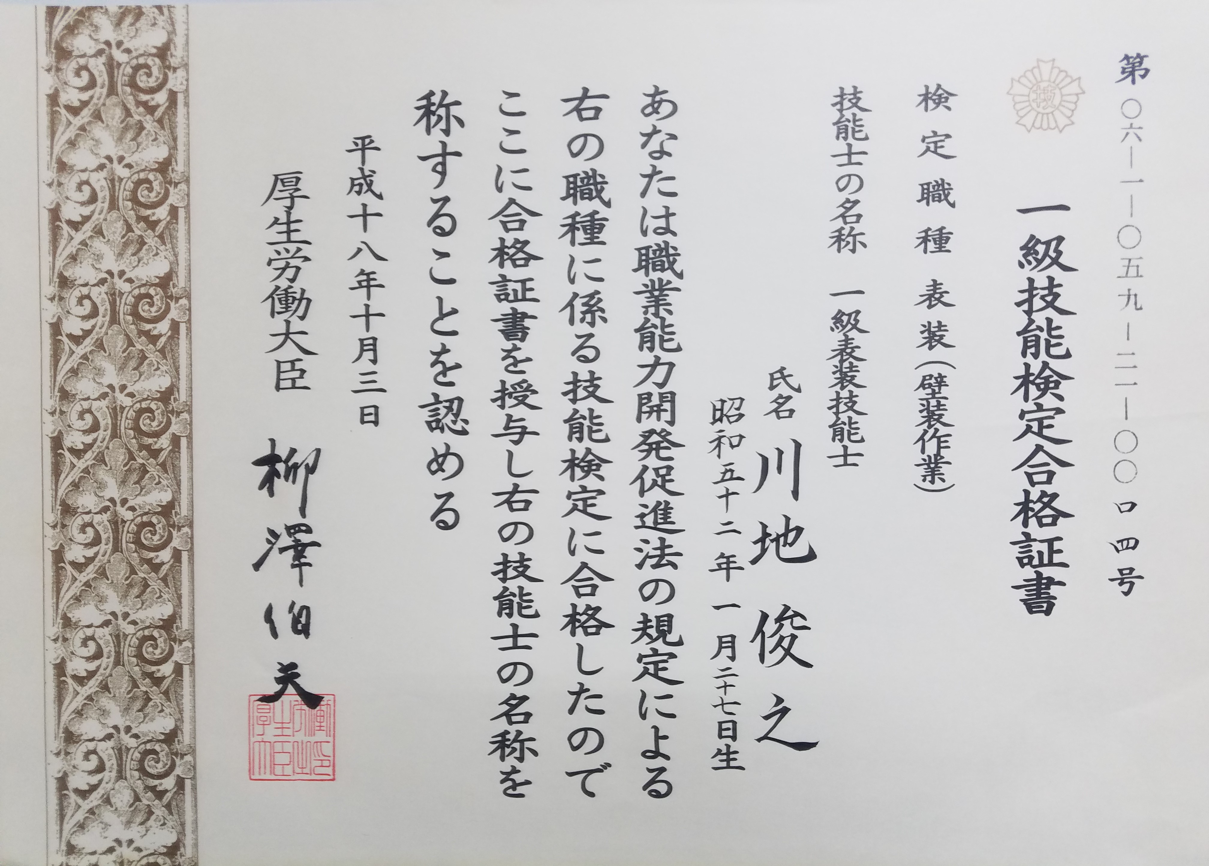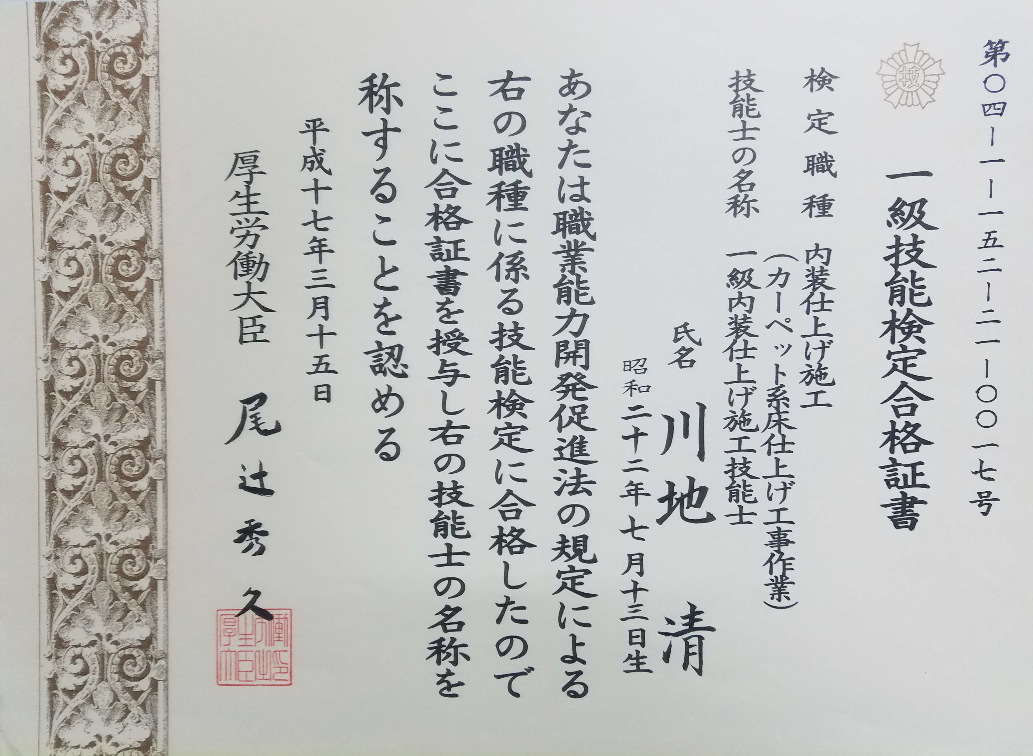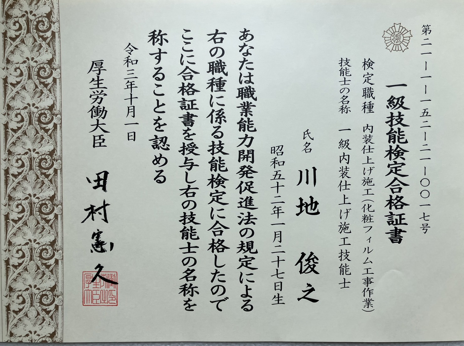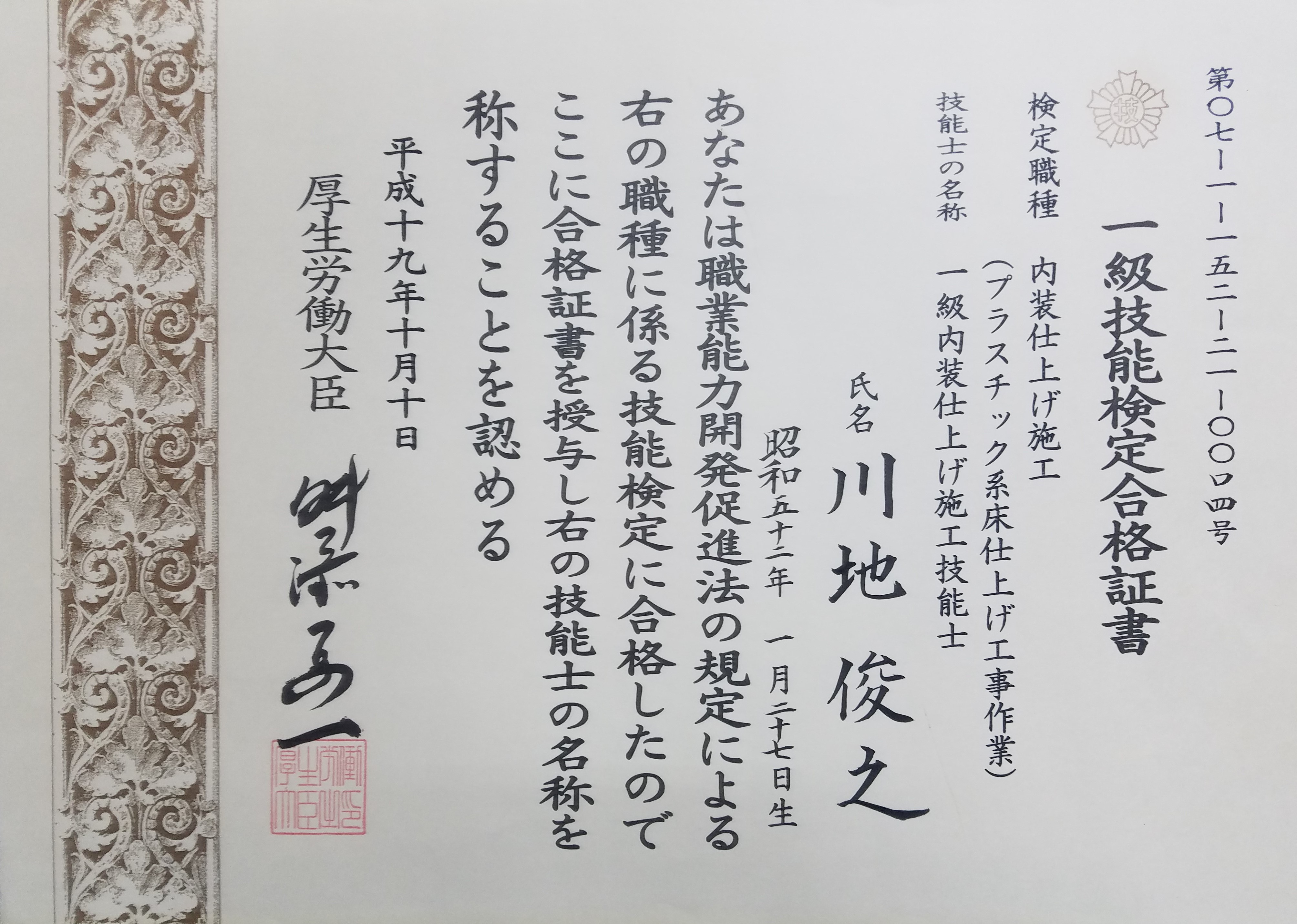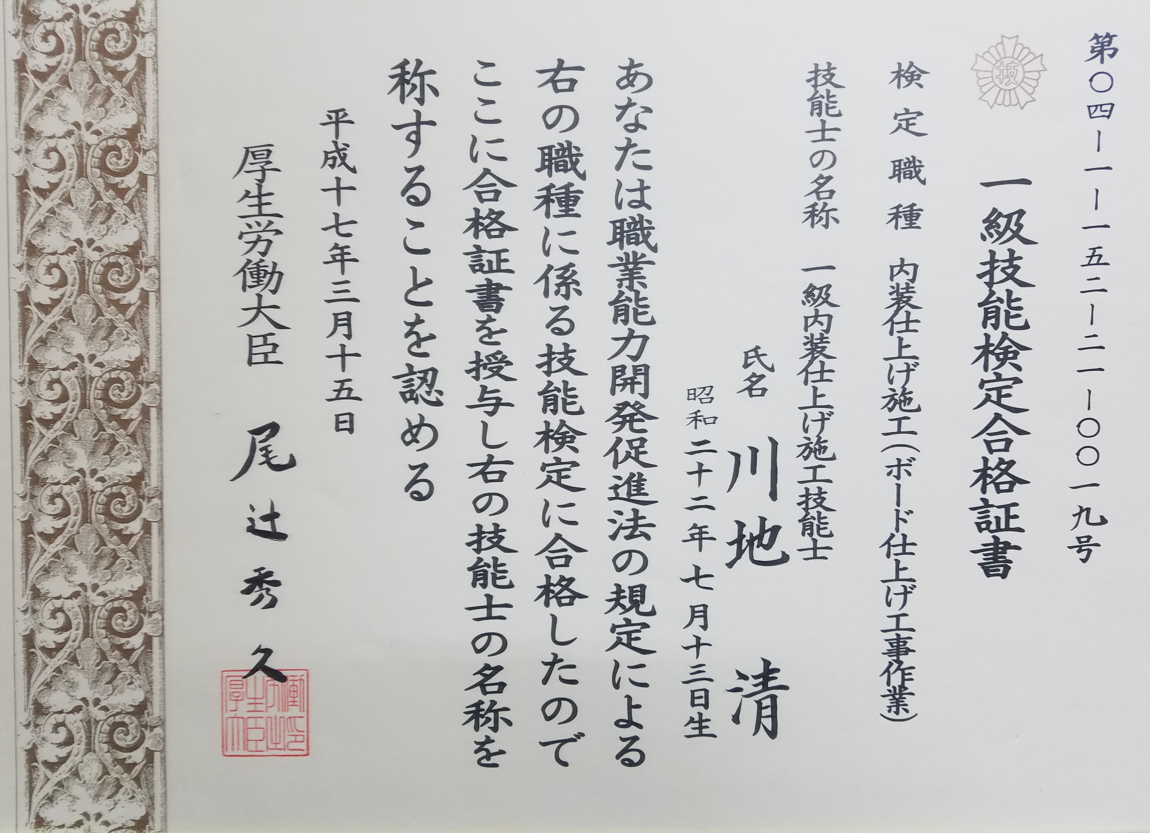 | 許可番号 | (般-26)第11867号 内装仕上工事業 |